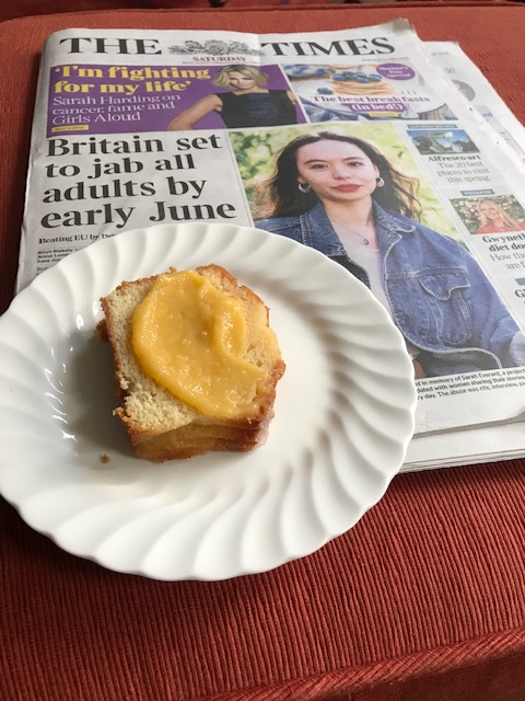 Today, we met Trish, Tod and Peter in the park-purely by accident, of course- and, by a stroke of luck I happened to have with me their two jars of curd to hand over in exchange for yet more fabulous cheese straws and a nifty tube of hand-sanitiser and hand – cream combined. We chatted for half an hour in the biting wind and then had to concede defeat.