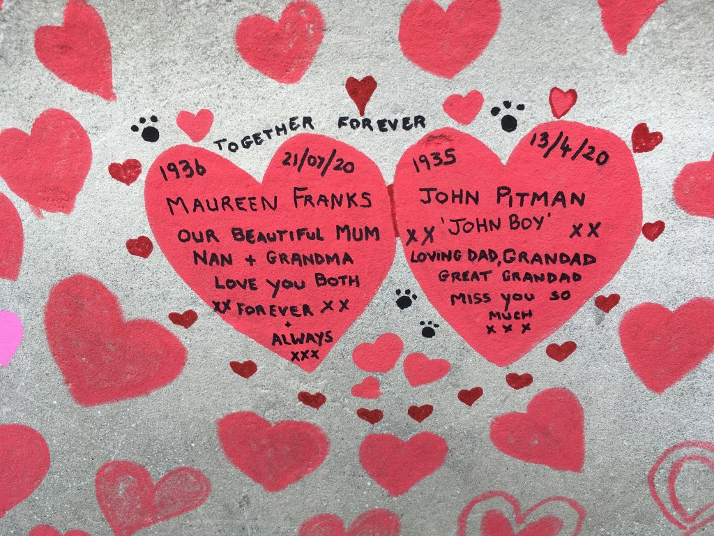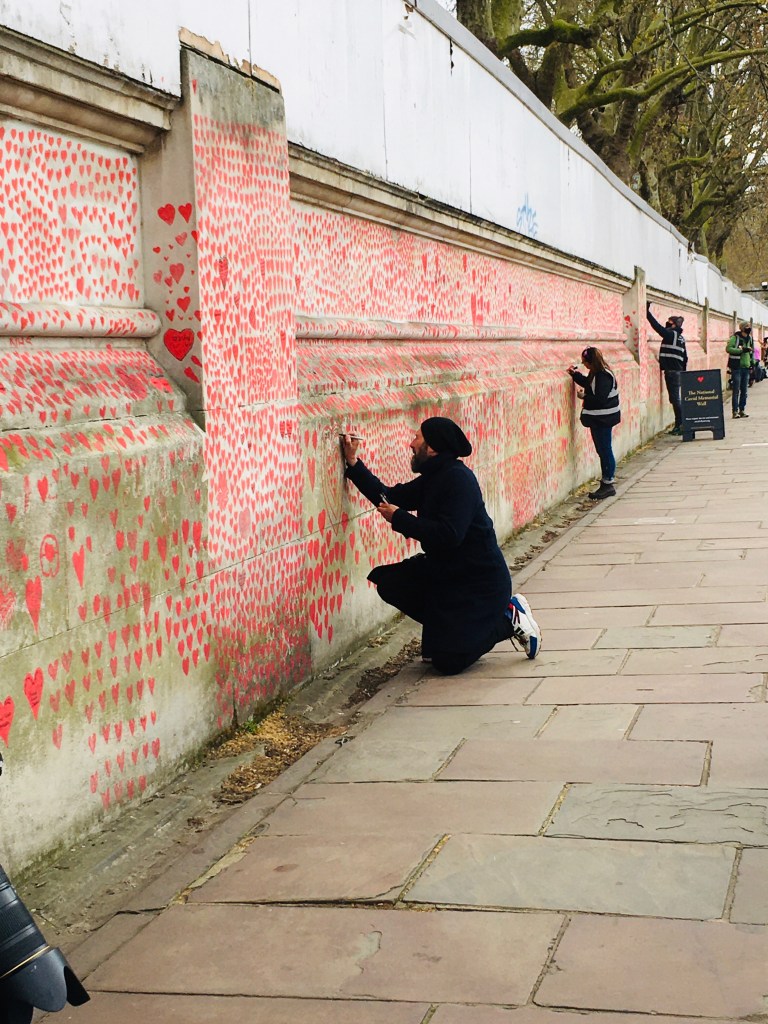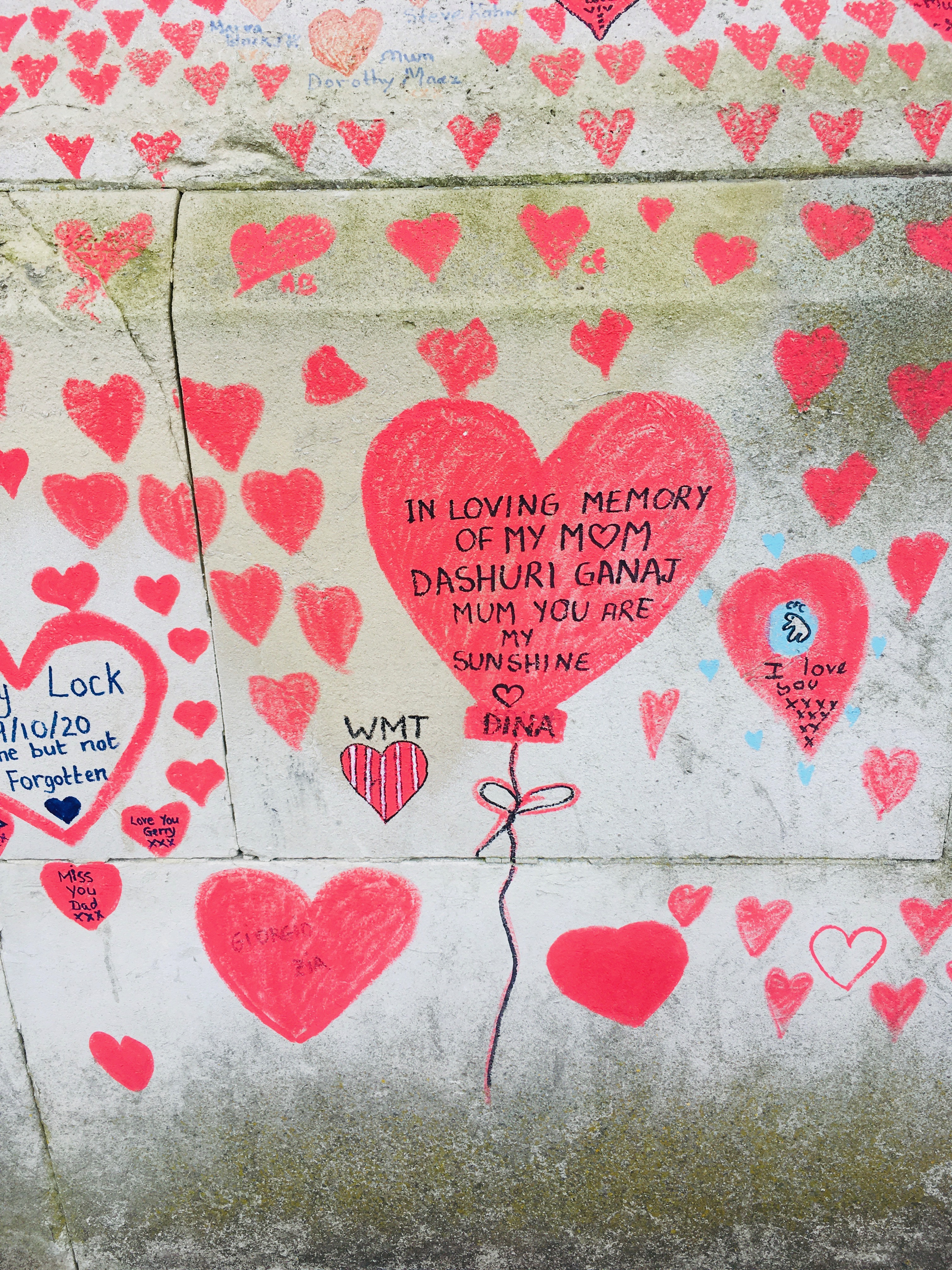 People have come from all over the country to London, defying travel restrictions and carrying with them their flowers, hopes and memories. They gather at the wall, talk to one another, read the messages left by others and take comfort in their united grief.