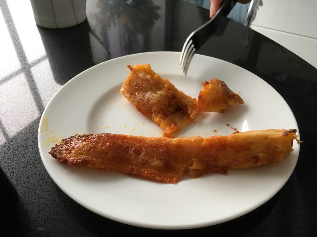 Only when we take them out of their bag, do we realise that what had looked crisp, knobbly and inviting in the basket are actually flaccid fingers of lumpen dough. We are so disappointed that, in an effort to cheer us up, “The Writer” suggests putting them in the oven to crisp. We wait in anticipation as the smell of cheese wafts through the kitchen – but when they come out of the oven they are transformed only into flaccid fingers of warm lumpen dough.
