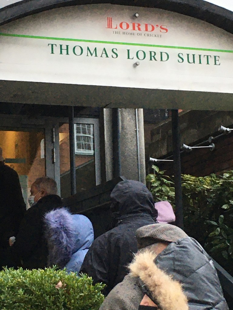 This afternoon we went to Lord’s Cricket Ground, not to see a match but to be vaccinated against Covid-19. A phone call from our GP surgery yesterday evening at 5pm allocated us appointments at 2:35pm and 2:40 pm today. After a small celebration dance around the kitchen together, the first thing “The Writer” did was to consult the weather forecast. It predicted heavy rain all day and ,as usual, he trawled through every App on every device ,hoping for one that might suggest, if not sunshine, at least dryness. But it was not to be. Rain all day. There followed an agonised discussion as to whether we could face walking the two and a half miles each way to Lord’s in the rain or should we take our biggest risk since March and go by taxi. We debate this all evening and most of this morning, in the end agreeing to walk to Marylebone High St. – about half way – and see how wet it is. In the event, it’s not too bad and we make it on foot to St. John’s Wood, home to Lord’s, in good time. Since we have appointments, we assume that we will saunter into the building and get jabbed straight away.