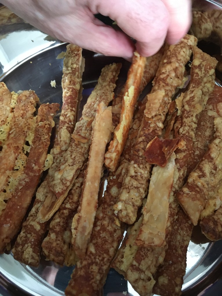Our friend, Trish, makes THE BEST cheese straws on the planet and, since food treats have become our single most important reward for everything from a hard day’s work to sewing on a button, we were missing her cheese straws, always plentifully strewn on tables during pre-meal drinks, when we visit for her equally magnificent lunches.