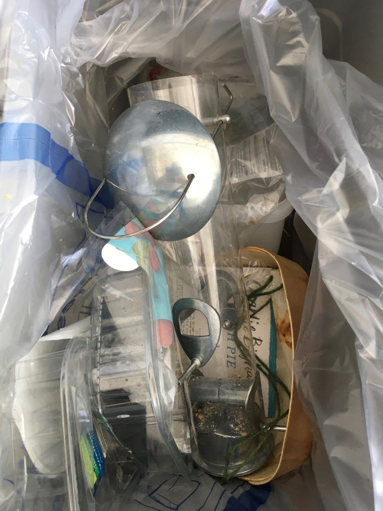 A mechanism for attaching it was the first problem. I have a belief that the wire coat hanger is the greatest aid to man and woman ever invented. I have them all over the house stretched out into long implements with the hook on the end for fishing out things kicked under the bed and dropped behind cupboards, for lowering the blinds whose cord I can’t reach, and pulling jars towards me from the back of too- high shelves. Sure enough, “the writer” had only to exert massive force to twist one into a serviceable hook.