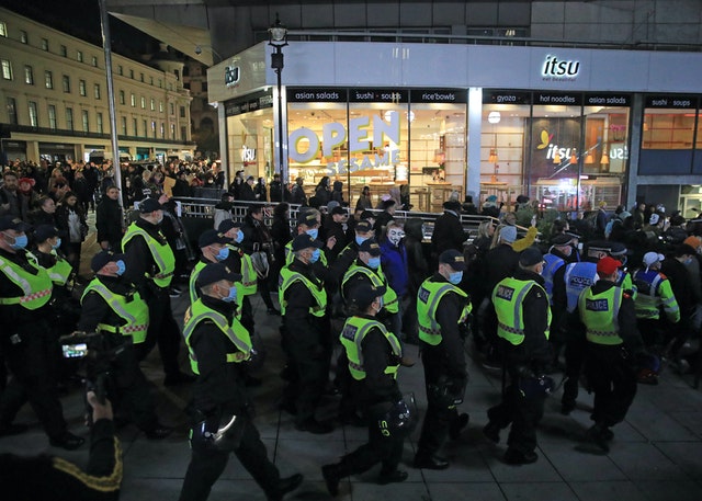 There’s nothing much to add to these pictures really. We chose to live in the centre of the city but not in the kind of maelstrom that swirled around us last night. Van loads of police cluttered the streets, helicopters dinned overhead and The Million Mask march kicked off the first day of Lockdown, protesting against it until the early hours.