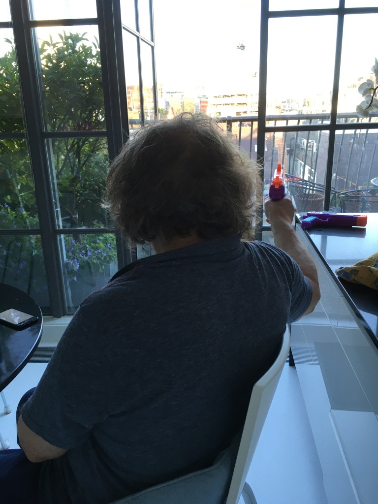 I discovered that adults – male adults, mostly- actually buy water pistols – sorry, water guns – for themselves! I even read an article headed “Watery Warrier. Best guns for grown men”